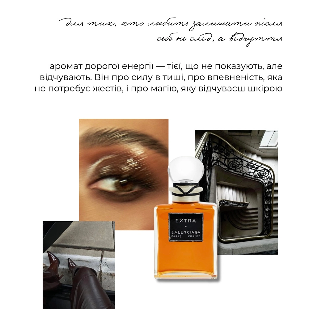 Extra від Balenciaga — це аромат, що пульсує енергією сучасної свободи, ніби спалах натхнення в серці нічного міста.
