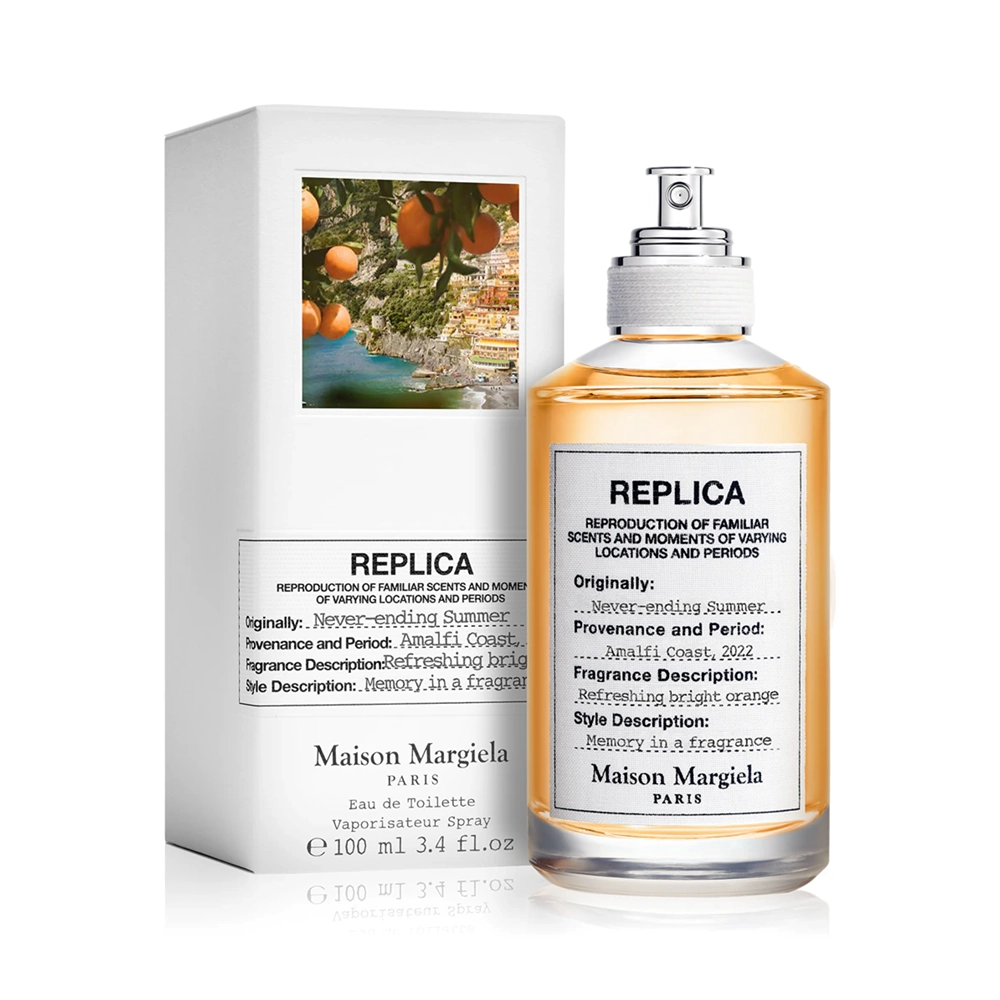 Never‑ending Summer Maison Margiela – вічне літо на амальфійському узбережжі: іскристий апероль, теплий чай і земляний шлейф